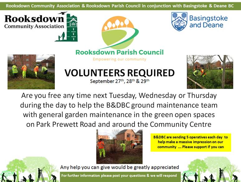 The agenda is posted on the Parish Council notice boards and the website www.rooksdown.org.uk